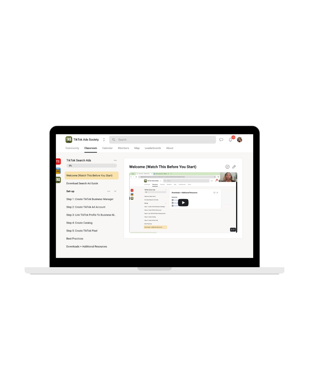 Video Tutorials on account setup, linking TikTok, and installing Pixel.